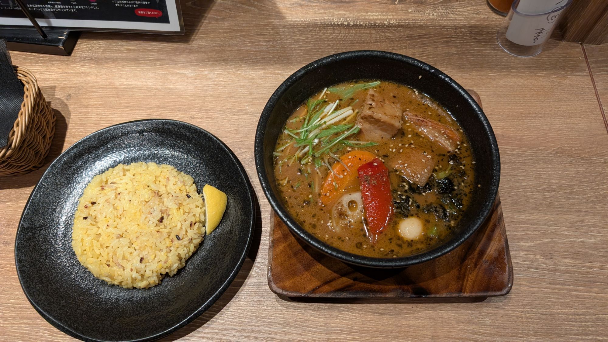今回、私は「とろとろ炙り焙煎豚角煮」をチョイス。角煮か柔らかチキンレッグが看板メニューで、中でも角煮は人気No1と書かれていました。