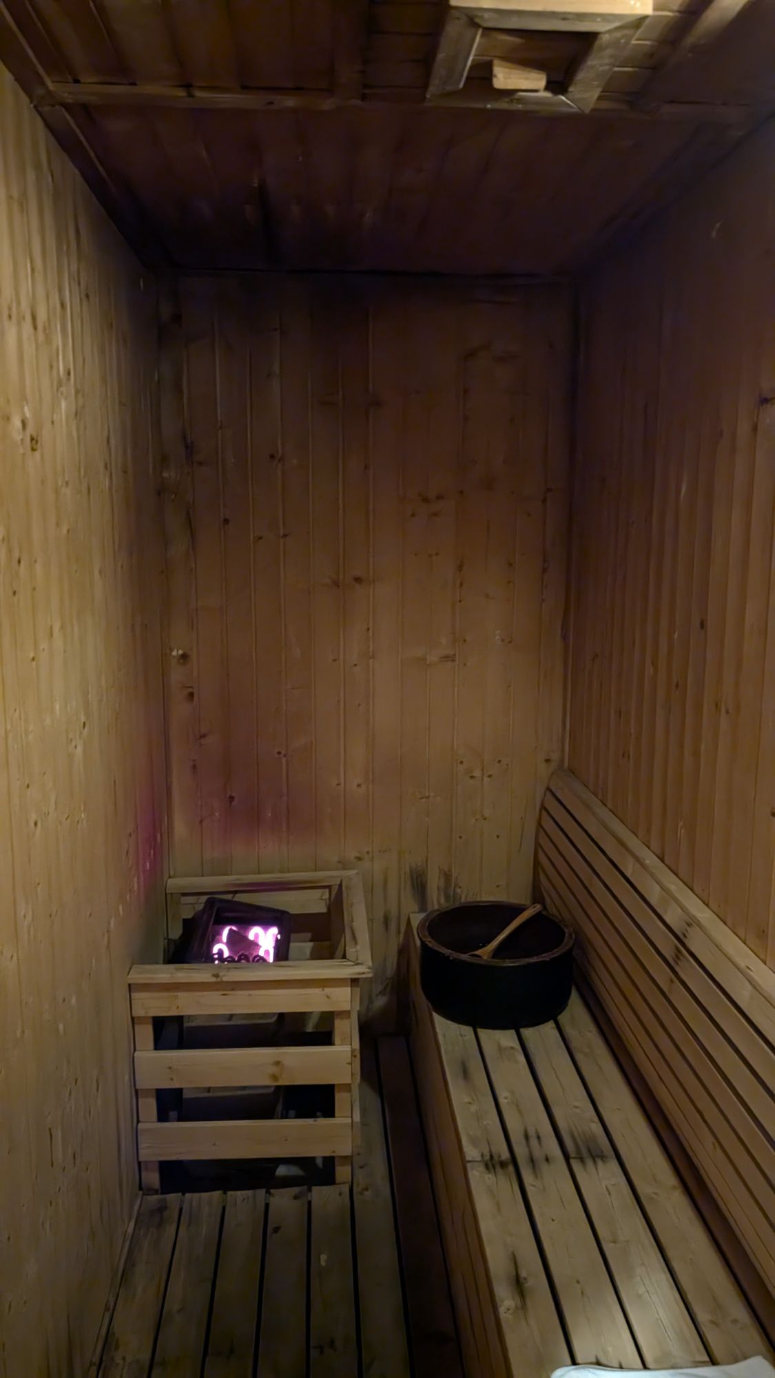 中の様子はこんな感じ。本格的なサウナがどうなっているか知らないのですが、これは電熱線か何かで温めているような感じでした。