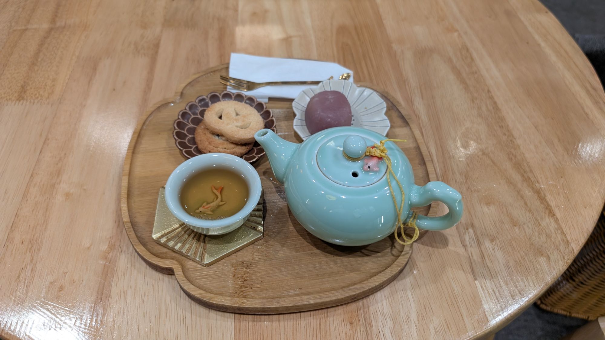 セットの内容は、ほうじ茶、クッキー、大福でした。どれもちゃんとした日本風だったように思います。スタッフさん曰く、全部日本から輸入しているとのこと。
