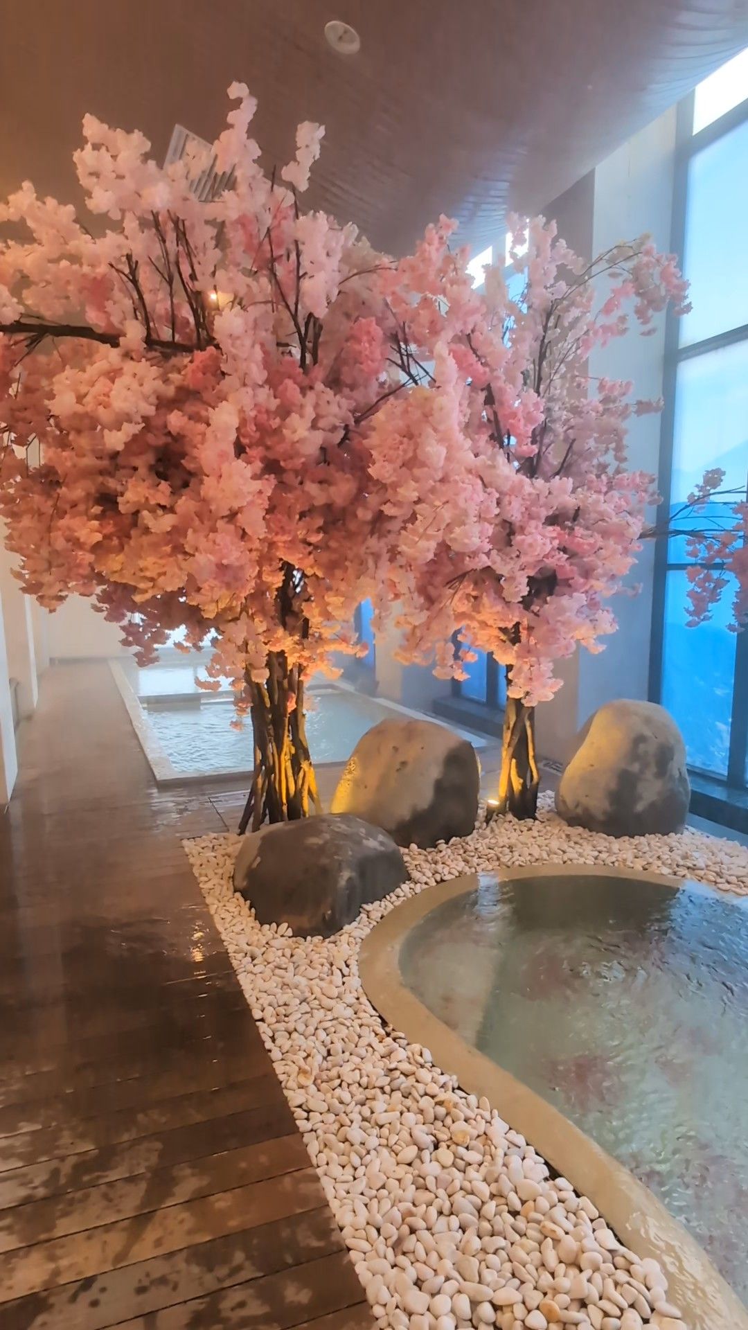 写真手前の湯船は「Sakura Pool」というようで、こちらも多くの人が写真を撮るみたいです。お湯の中に塩が含まれていて、肌にも良いんだとか。また、写真中央のプールはナノバブルが出ており、こちらも肌に良いようです。