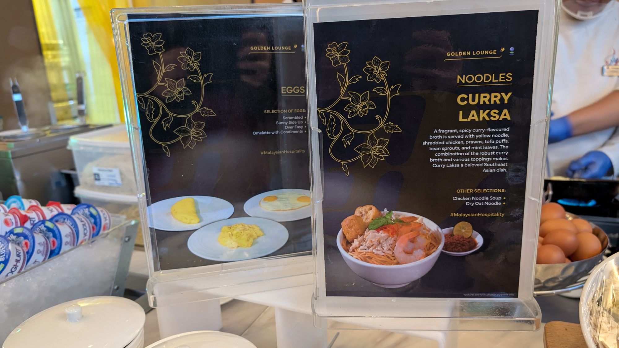 コールドミールが置いてある横にライブキッチンもあり、ラクサや卵料理を提供してくれるようです。