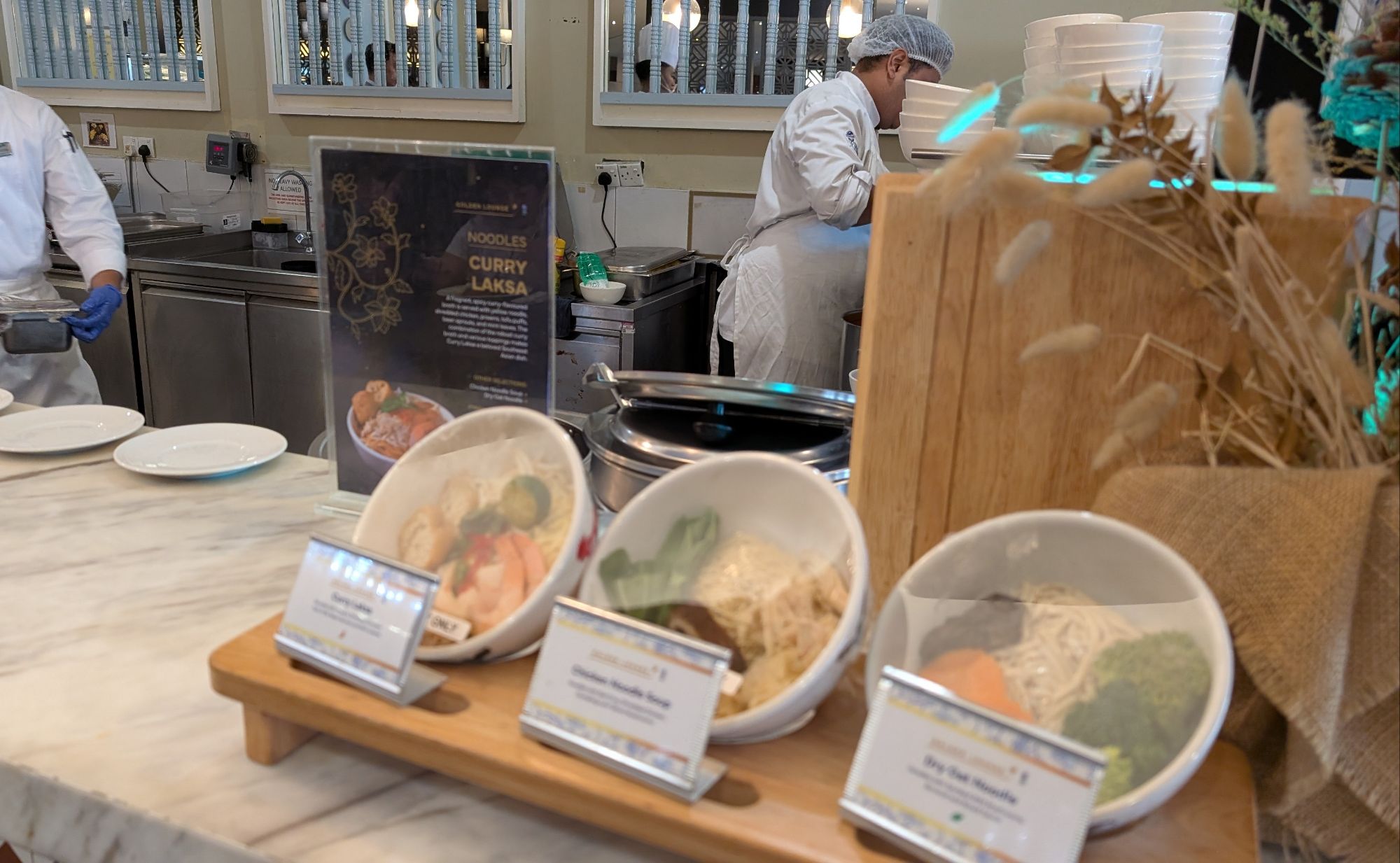 手前側にはヌードルバーがあり、ラクサなどの麺類が注文できるほか、オムレツなどの卵料理も同じライブキッチンで調理してくれるようでした。