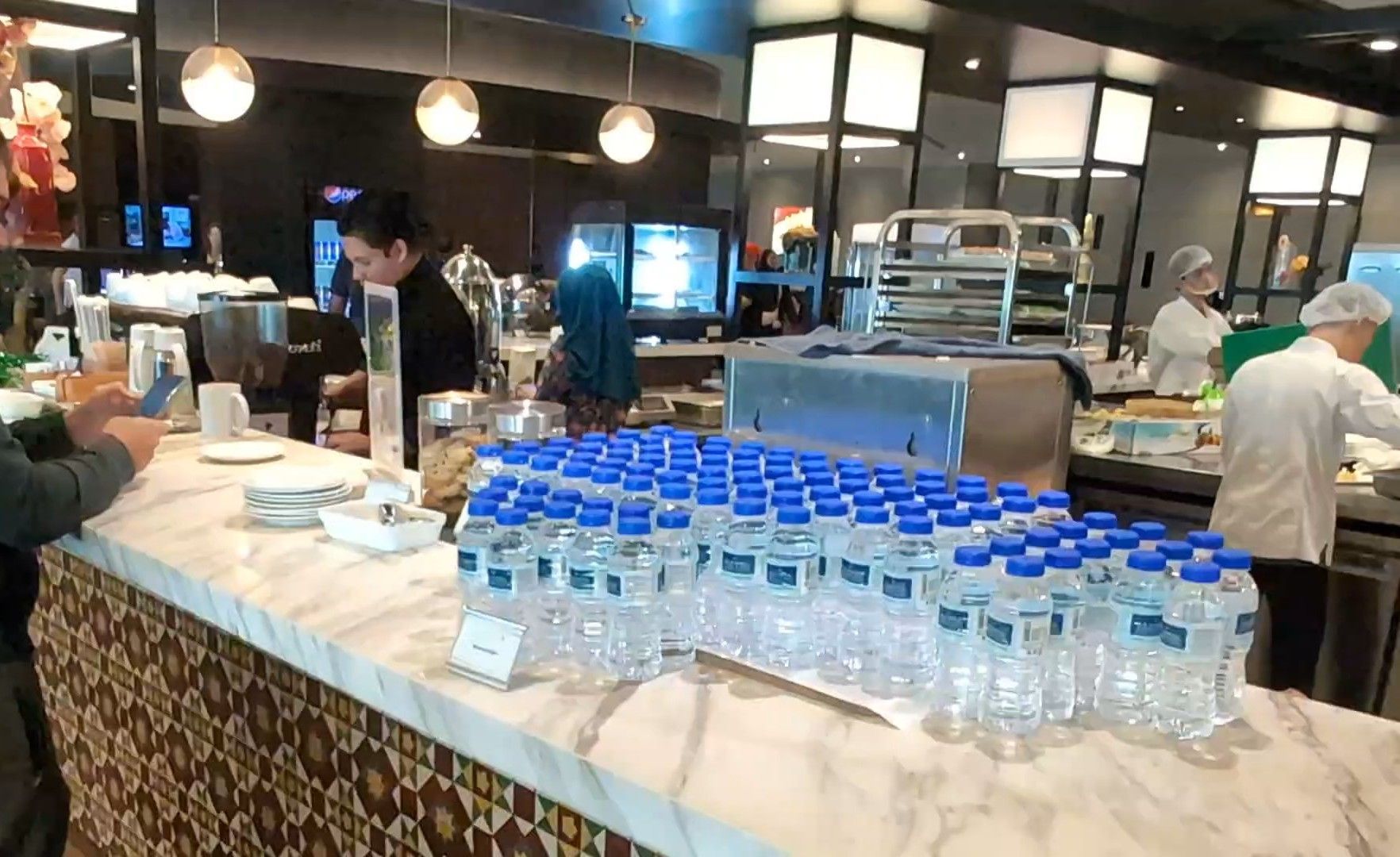 水は常温でも置いてありました。機内用に飲みかけを持っていきたいところですが、KULは搭乗前の荷物検査がありますので、持っていくことはできません。