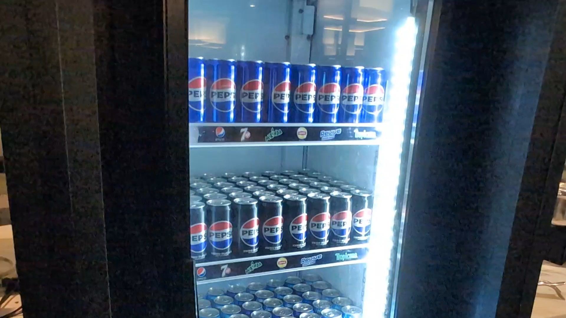 飲み物は、各種ソフトドリンクが冷蔵庫とサーバーで提供されています。ここにもアルコールはなしでした。