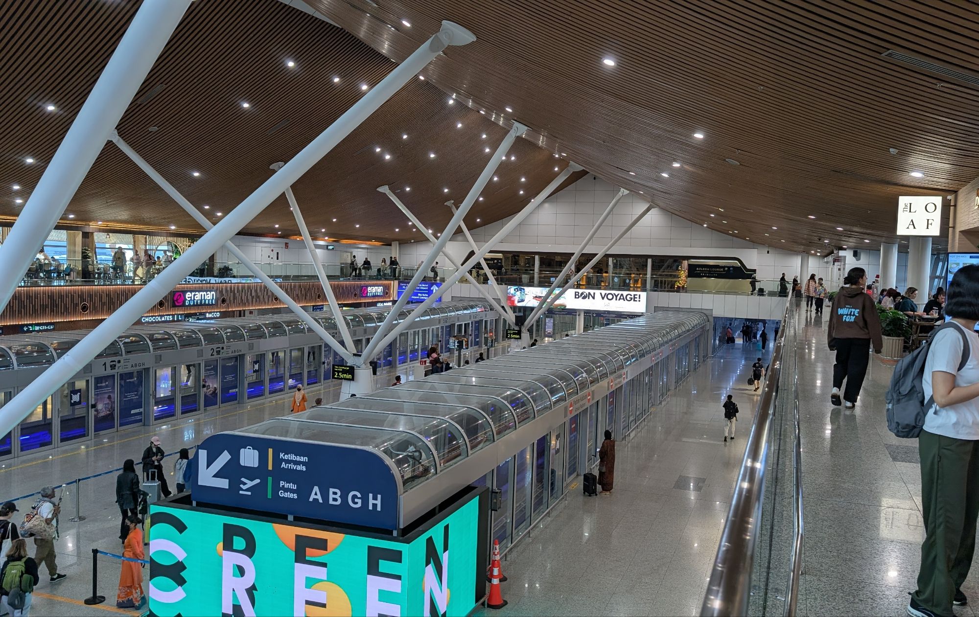 エアロトレインでサテライトターミナルに着いたら、とりあえず1つ上のフロアに行きます。最寄りのエスカレーターやエレベーターに乗りましょう。