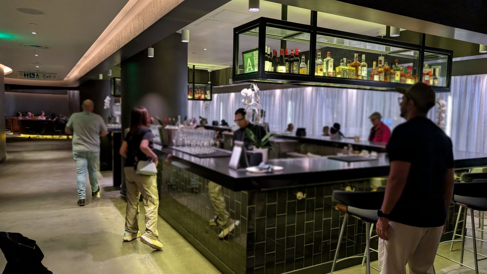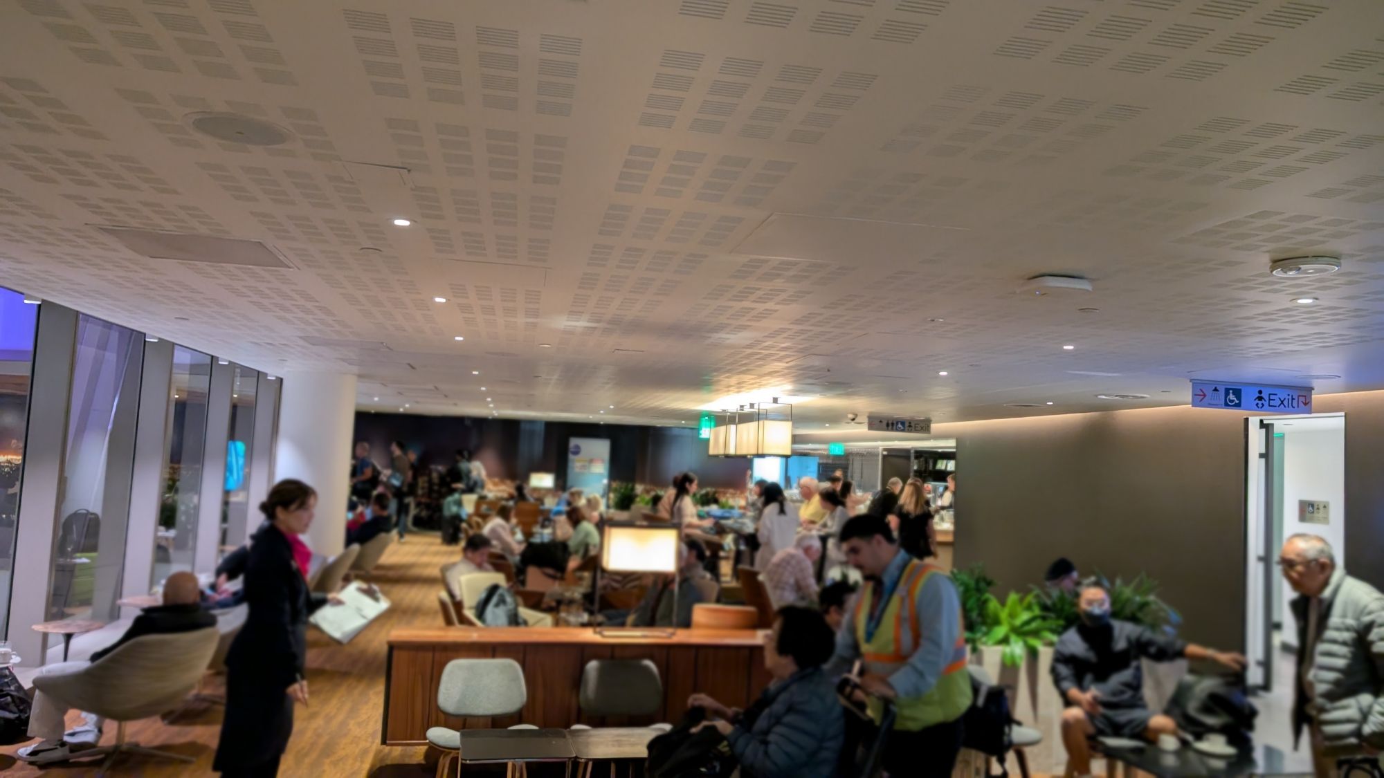 こちらがラウンジ入り口の様子なのですが、見てわかる通り、入り口のサインにカンタス、キャセイパシフィック、ブリティッシュエアウェイズの名前が併記されています。このラウンジは、ワンワールドに属するこれら3社によって共同運営されている、かなり珍しいラウンジなのですね。(ワンワールドのラウンジ情報ページによると、最新情報はカンタス航空のサイトでチェックしてください、と表示されるため、主たる運営者はカンタス航空であるものと思われます。)