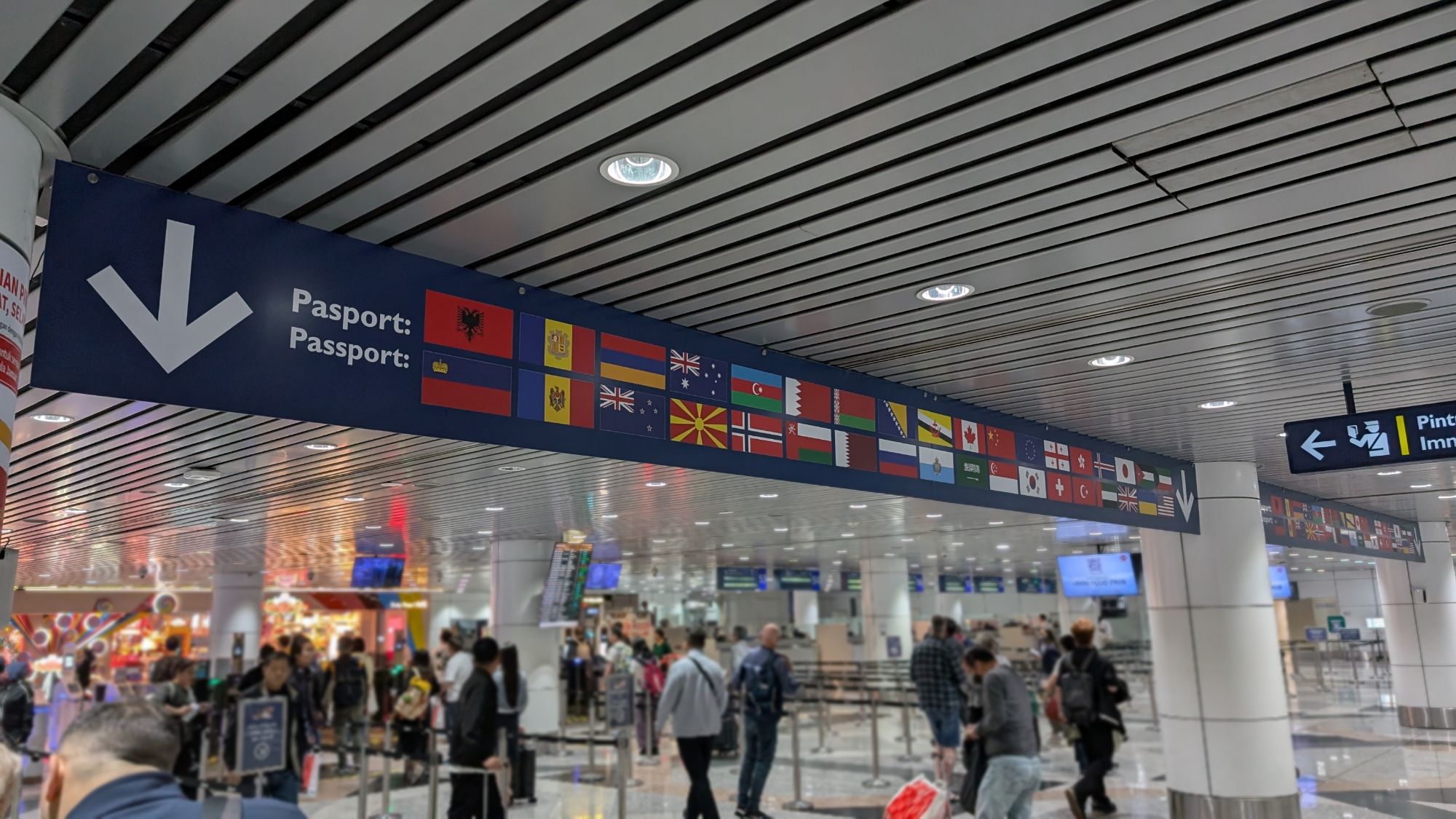 この空港の国際線はサテライトターミナルを利用しているため、まずは本館まではエアロトレインと呼ばれる電車で移動します。本館につくと、入国審査です。