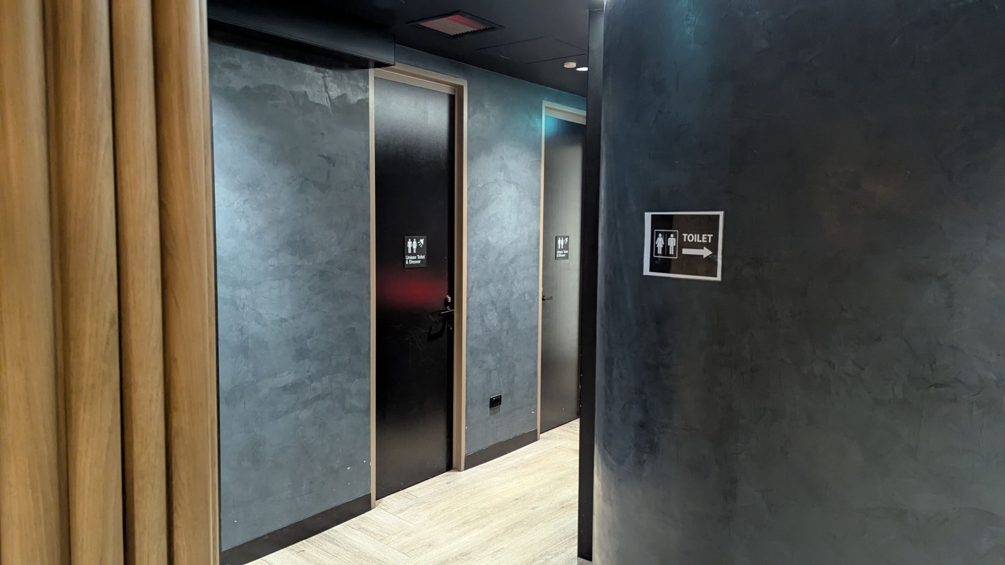 ラウンジ中央にあるトイレのエリアに、シャワールームもあることが確認できました。