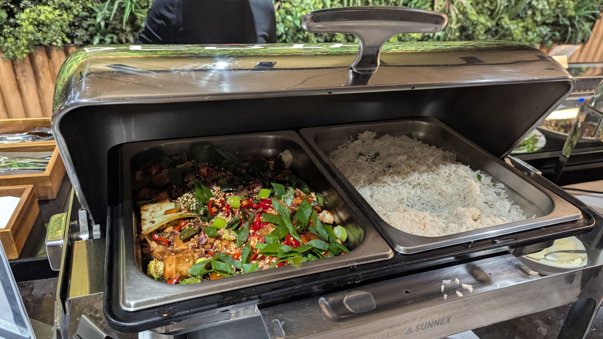 ホットミール②。豆腐と野菜の炒めもの、ライス。
