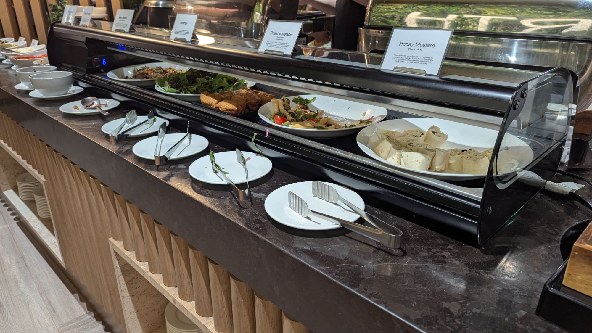 食事はこの写っている部分のみで、品揃えはPPラウンジの中でもかなり悪い部類と言って過言ではないでしょう。航空会社指定ラウンジとしては間違いなく最下層です。